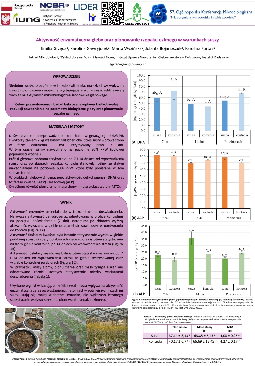 - Aktywność enzymatyczna gleby oraz plonowanie rzepaku ozimego w warunkach suszy (Grzęda E., Gawryjołek K., Wyzińska M., Bojarszczuk J., Furtak K.).